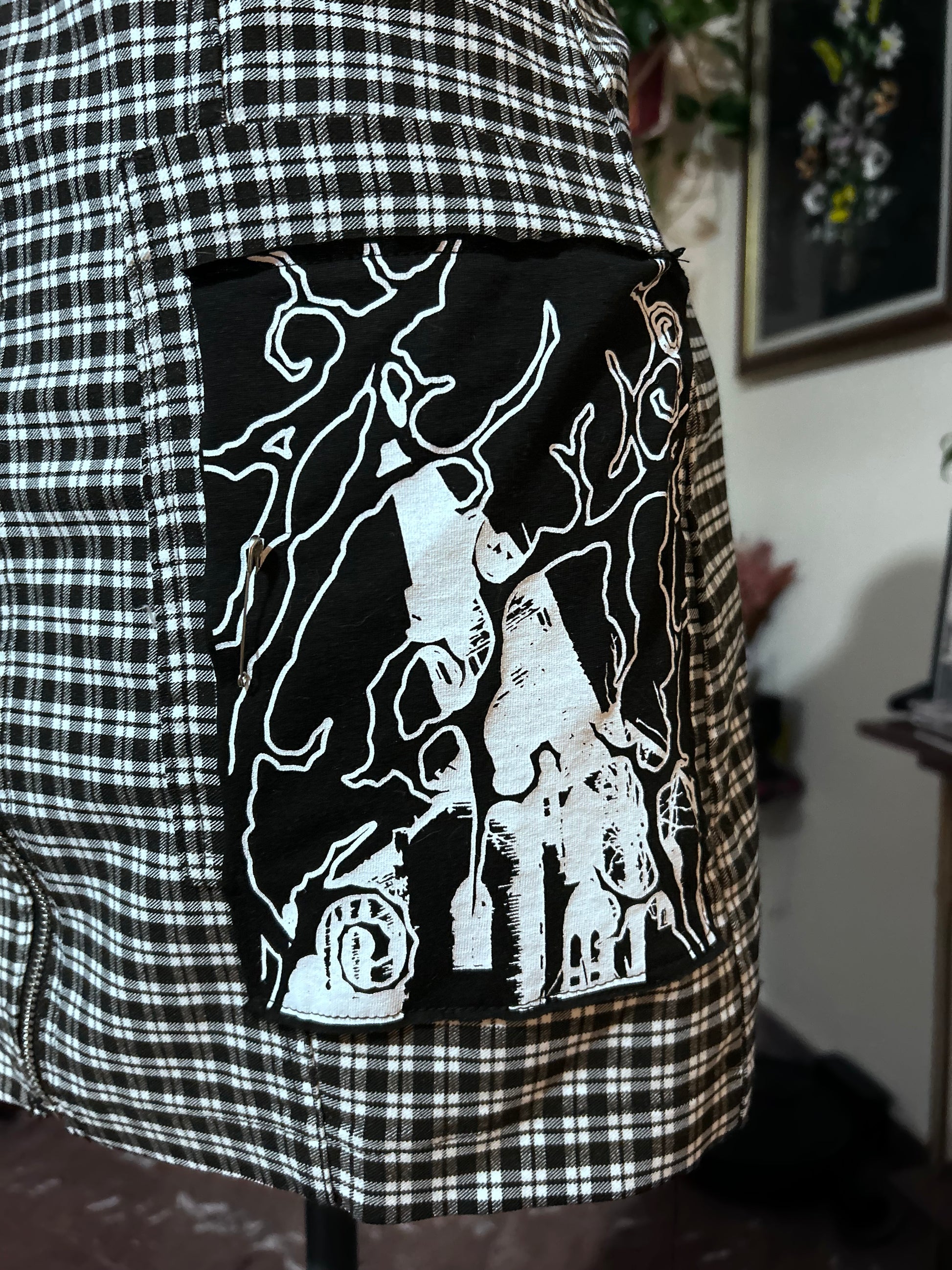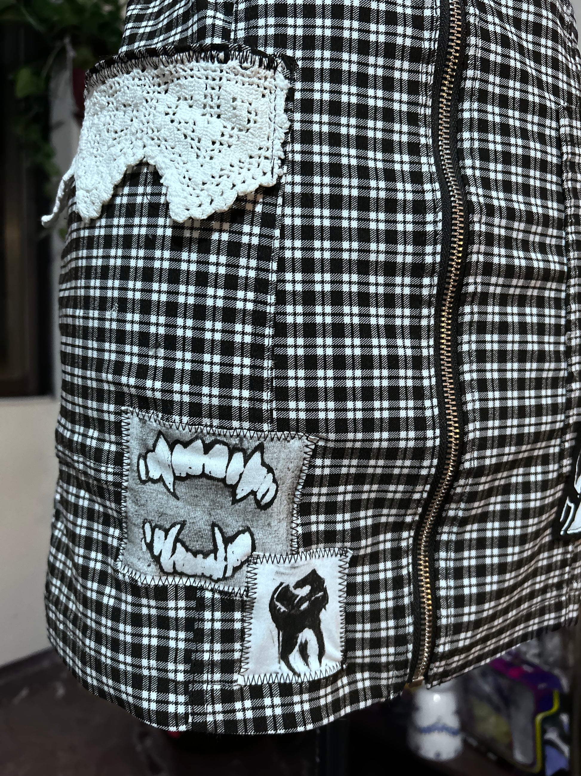 Handmade reworked mini skirt made from vintage plaid fabric. One-of-a-kind piece dark, grunge and full of attitude.